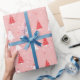Rote und weiße Weihnachtsbäume im rosa Hintergrund Geschenkpapier
