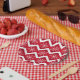 Rote und weiße Weihnachtsschneeflocken Zickzack Mu Pappteller
