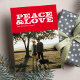 Frieden und Liebe. Diese rote Ferienkarte mit einem Foto bietet einen Retro-Gruß, aber immer eine passende Nachricht.