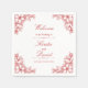 Verzieren Sie Ihren Hochzeitsempfang mit einem Esstisch aus dem klassischen Papier Napkins, das an jeder Ecke verzierte Blumendekorationen aufweist. Die Text- und Hintergrundfarbe kann so geändert werden, dass Ihre eigenen Anforderungen Anzug werden, und andere passende Artikel sind in meinem Shop verfügbar, um ein thematisches Ereignis zu erstellen.