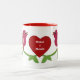 Tasse mit niedlichen roten Vogelpaaren mit Herzakzenten und Text, um mit ausgewählten Namen oder anderen Nachrichten anzupassen. Süßes Design für Neugeborene, Valentine's oder Sweetest Day.