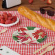 Rote Wasserfarbe Poinsettia Blumengrün Pappteller