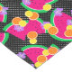 Rot grüne Wassermelone, Orangen, hellgelbe Zitronen tropische Früchte auf schwarz-weißem Hintergrund. Die Blume des Lavendel-Hibiskus sind in den Früchten verstreut. Ein lustiges Sommerprint. Achten Sie auf die Koordination der Drucke in der Tropical Watermelon Collection.