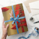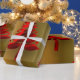 Eine elegante Weihnachtspackung mit einem Set aus roten Weihnachtsbäumen vor metallischem goldfarbenem Hintergrund, um Ihre Geschenkidee in dieser Urlaubssaison um eine Touch festlicher Klasse zu bereichern.