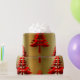 Rote Weihnachtsbaumen auf Gold Geschenkpapier