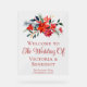 Dieses herrliche Begrüßungsschild aus Weihnachten mit Acrylfarben und roten Poinsettia-Blume und Kiefernkiefern-Blätter für die Ferien. Ein elegantes Winterhochzeitszeichen mit rotem Schriftzeichen für die Ferien. Hübsche Poinsettia Blumendekor, um Ihre Gäste willkommen zu heißen.