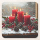 Rote Weihnachtskerzen Tannenzapfen Stechpalme Rechteckiger Pappuntersetzer