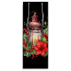 Geschenktasche mit einem gemütlichen Weihnachtsbild mit einer roten Laterne umgeben von Kiefer und eine Poinsettia und heilig.