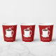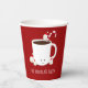 Urlaubspapiere für ein Weihnachts-Hot-Chocolate-Party. Diese Becher verfügen über eine lächelnde Tasse heißen Kakaos mit einem Süßkarree und einigen fröhlichen Marshmallows (mit Weihnachtsmannmützen) auf rotem Hintergrund. Alle Wörter können angepasst werden. Red Weihnachtsmannmütze Hot Chocolate Weihnachtsbuch Party Cups Sweetsham Food Art | ©Melissa Patton - Künstler/Illustrator