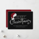 Moderne Corporate Weihnachtskarte mit silber Frohe Weihnachtsschrift und Weihnachtsmannmütze auf schwarzem Hintergrund. Diese moderne Weihnachtskarte in Rot und Silber lässt sich leicht anpassen, indem Sie einfach Ihre Botschaft und Ihr Logo in den Schriftart Stil und Farbe Ihrer Wahl einfügen. Sie können auch die Hintergrundfarbe ändern.