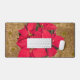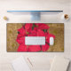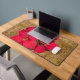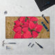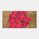 Rote Weihnachtssterne, goldene Sterne auf abstrakt Schreibtischunterlage