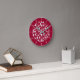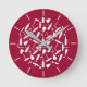 Burgundy rote Wanduhr mit einer weißen Weingläser, Flaschen und Korkschraubmuster