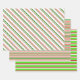 Die Motive dieser Weihnachts- und Feiertagsthemen sind mit Mustern von Streifen in den Farben Grün, Weiß und Rot gestaltet. Papierblätter wie diese zu umhüllen, könnte Spaß machen, wenn man Geschenke oder Geschenke zum Weihnachtsfeiern einpackt.
