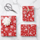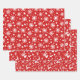 Rote und weiße Schneeflocken, Rentiere und Bäume auf diesen Weihnachts-/Feiertagsblättern - Set von drei. Sehen Sie sich unser passendes Packpapier an.