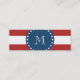 Rote weiße Streifen Muster, Marine-Blau-Monogramm Mini Visitenkarte