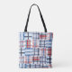 Rote, weiße und blaue Madras Tote-Tasche mit Text