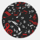 Rote weiße und schwarze Musikernoten Runder Aufkleber