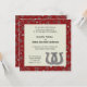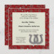 Eine wunderbare Westerneinladung erfolgt in einem roten Bandanamuster. Die Grenze um diese quadratische Einladung ist ein rotes Bandanamuster, während die Mitte elfenbeinfarben und für Sie Text reserviert ist. Zwei Pferdeschuhe sitzen in der unten rechtsecke. Groß für irgendeine themenorientierte Hochzeit des Landes.