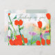 Aquarellfarbene Wildblumen in Rot und Lavendel mit langen Stielen und Blätter. Text. Weiche Pastelltöne und farbenfroh und hübsch. Rot und Lavendel Blume und Himmel auf der Nachrichtenseite.
