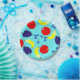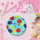 Dieses Kissen-Design hat vier verschiedene bunte Früchte. Apfel, Banane, Heidelbeere und Traubenzeichnungen sind hell und lustig.