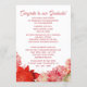 Einzigartige und trendige Gratulationen Graduieren Ankündigung und Abschluss Einladungskarte gerahmt mit einem schönen roten und rot-rosa Aquarellfeder und Sommerblumenkranz auf einem klassisch weißen Hintergrund. Mit Raum zum Anpassen oder Personalisieren mit einem Foto, den Namen des Absolventen, Klasse Abschluss Jahr, High School, künftige Uni oder Universitätsname, und feiern Party-Event-Informationen. Lass der Familie, Freunden und Nachbarn, dass es einen glücklichen Absolventen gibt, der bereit ist, die Welt zu erobern, und laden Sie alle ein, das glückliche Ereignis mit Ihnen zu feiern!