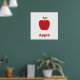 Roter Apfel auf weißem Hintergrund mit roten Worten. Helfen Sie Ihrem Kleinen, mit diesem Apfeldesign Früchte zu lernen.