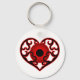 Niedliches und seltsames Wirbles Herz mit einem seltsamen, roten Augapfel und einem roten Schnitt an einer niedlichen Schlüsselkette.