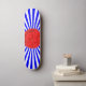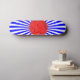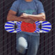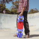 Cooles Skateboard mit rotem Ball- und Bue-Streifen Hintergrund.