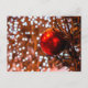 Ein roter Zierball auf einem Weihnachtsbaum im Freien. Weiße Lichter im Hintergrund. Ein Geschenk oder Druck, um Ihren Ort zu dekorieren. Einzigartige Postkarte für Sie. Sie können dieses Design auf ein anderes Produkt übertragen, wählen Sie einfach ein oder mehrere in der nachstehenden Zeile. Das Design ist wirklich groß, man kann es auf jedes Produkt in jeder Größe übertragen. Um das Bild an einem neuen Produkt Ihrer Wahl anzupassen, benutzen Sie einfach die Schaltfläche Anpassen und Füllen rechts neben dem Design-Bild. Frohe Weihnachten und glücklich sein!