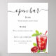 Mit dem Text: Bar öffnen. Personalisieren Sie Ihr Menü und fügen Sie Ihr Bar hinzu. Die Einrichtung ist mit einem roten Getränk geschmückt.