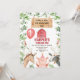 Roter Barnyard Farm Geburtstag Einladung Niedlicher Bauernhof zum ersten Geburtstag mit einer niedlichen roten Scheune, Schwein, Kuh, Esel und zwei Enten, sowie etwas Grün oder Blattwerk rund um die Ränder der Einladung. Dieses Farm-Geburtstagsgeschenk-Design bietet auch einen roten Ballon, Holzbanner und einige niedliche Party-Hüte.