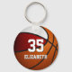 Dieser Basketball-Schlüsselanhänger für Jungs und Mädchen zeichnet sich durch das realistische Bild eines Basketballs aus, der aus zwei farbigen Panels besteht - einem rot und einem weiß -, der sich leicht mit Spielernamen und Jersey-Nummer personalisieren lässt - von katz_d_zynes