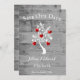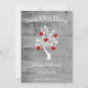 Personalisieren Sie eine einzigartige Hochzeitsankündigung mit einem Roten Tree of Hearts Save the Date. Das Design der Ankündigung ist aus grauem Holz mit einem Baum mit blühenden Herzen an seinen Zweigen und Text, den Sie mit Ihren Hochzeitstermin Details. Zusätzliche Ankündigung Datum freihalten für dieses Design in verschiedenen Farben verfügbar.