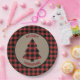 Roter Büffel-karierter Grenzweihnachtsbaum Pappteller
