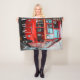 Roter Bus in der belebten Straße, weißer Text Fleecedecke
