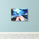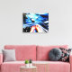 Kühlung heiß fühlen in einem coolen Strom. Hoch kontrastblau, rot, rosa, orange und gelb mit weiß und schwarz. Handgemalte Fotos.