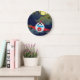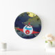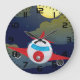 Roter Cartoon-Flugzeug fliegt in der Nacht Große Wanduhr