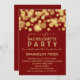 Dieses moderne stilvolle Ausrüstungsbeschreibungen ein Goldbokeh Punktentwurf mit einem roten Hintergrund. Während diese Einzelheit einladen, wird für Junggeselinnen-Abschiede gemacht, es ist auch groß für Verlobungs-, Geburtstags-und des Sylvesterabends Partys. Personifizieren Sie diese Einladung mit den Sonderkommandos Ihres Party. Die Rückseite hat auch viel des Raumes zu Information.