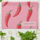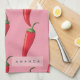 Roter Chili Pepper-Muster auf rosa Hintergrund Geschirrtuch
