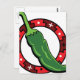 Ein Single mit grünem Chili Pfeffer mit einer roten Ringgrafik dahinter. Tolle Grafik für jeden, der heiße Pfefferbilder braucht! Fügen Sie Ihren eigenen Text für ein individuelles Pfefferdesign hinzu! Ideal für Chili-Kekse, Restaurants, Küchen, Gärtner oder alle warmen Pfefferanhänger.