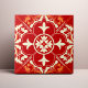 Roter Creme- und orangefarbener Azulejo-Mandala Fliese