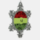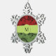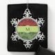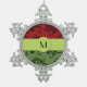 Roter Damast, grüner Damast, Monogramm Schneeflocken Zinn-Ornament
