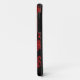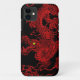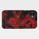 Ein blutroter chinesischer Drache mit gelben Augen gegen einen schwarzen Hintergrund.