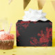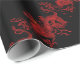 Ein blutroter chinesischer Drache gegen einen schwarzen Hintergrund.