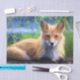 Gewebepapier mit einem wunderschönen Bild eines roten Fuchses in grünen Gräsern. Diese niedliche Kreatur hat weiches Fell und sanfte Augen. Bild hat ein traumhaftes magisches Gefühl.