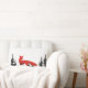 Ein weißes und schwarzes Kissen im Winterstil mit Pastellfarben, die roten Fuchs in einem von Holzkohle geprägten Kiefernwald mit weißem, solidem Hintergrund gemalt haben. Auf der Rückseite befindet sich der weibliche Fuchs, um eine Szene mit mehreren Kissen zu schaffen.