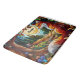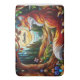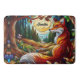 Dieses lebendige Design spiegelt das Aussehen des Buntglases wider und zeichnet sich durch einen hübschen roten Fuchs unter den Bäumen unter einer gelben Sonne aus.