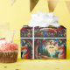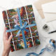 Dieses lebendige Design spiegelt das Aussehen des Buntglases wider und zeichnet sich durch einen hübschen roten Fuchs unter den Bäumen unter einer gelben Sonne aus.