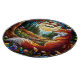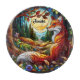 Dieses lebendige Design spiegelt das Aussehen des Buntglases wider und zeichnet sich durch einen hübschen roten Fuchs unter den Bäumen unter einer gelben Sonne aus.
