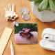 Dieser Schlüsselanhänger hat einen roten Frosch darauf.